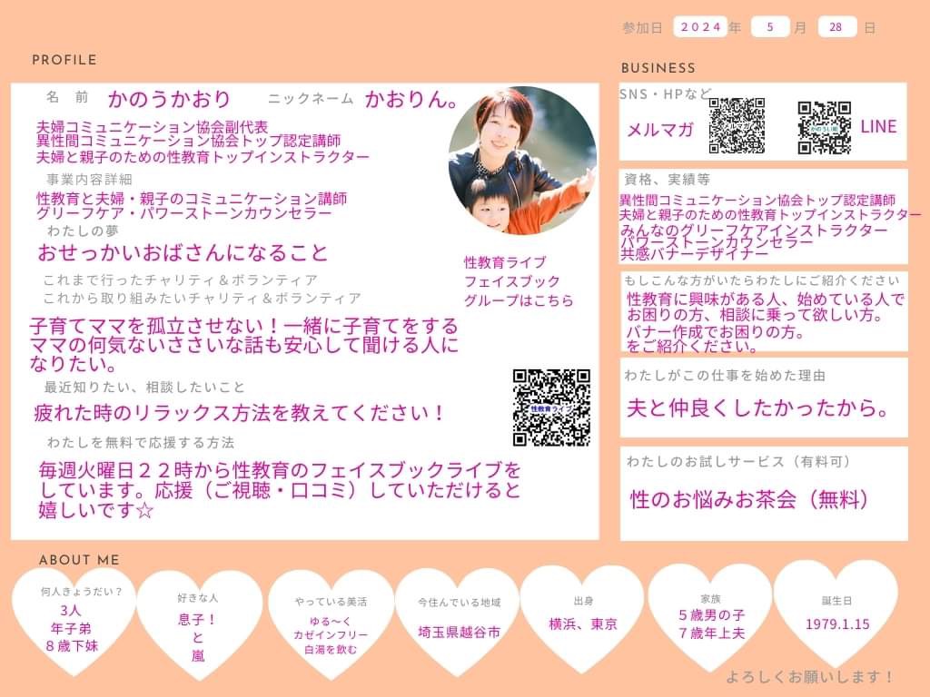 肩書・社名: 夫婦と親子のための性教育トップインストラクター