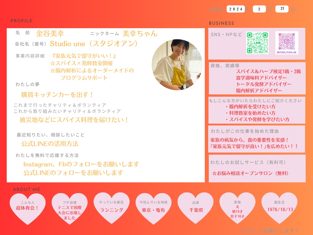 ひとこと: すべての人の身体に栄養を、こころに安らぎを、身体が元気になることで心も穏やかになり、心と身体の豊かさを提供させていただいております