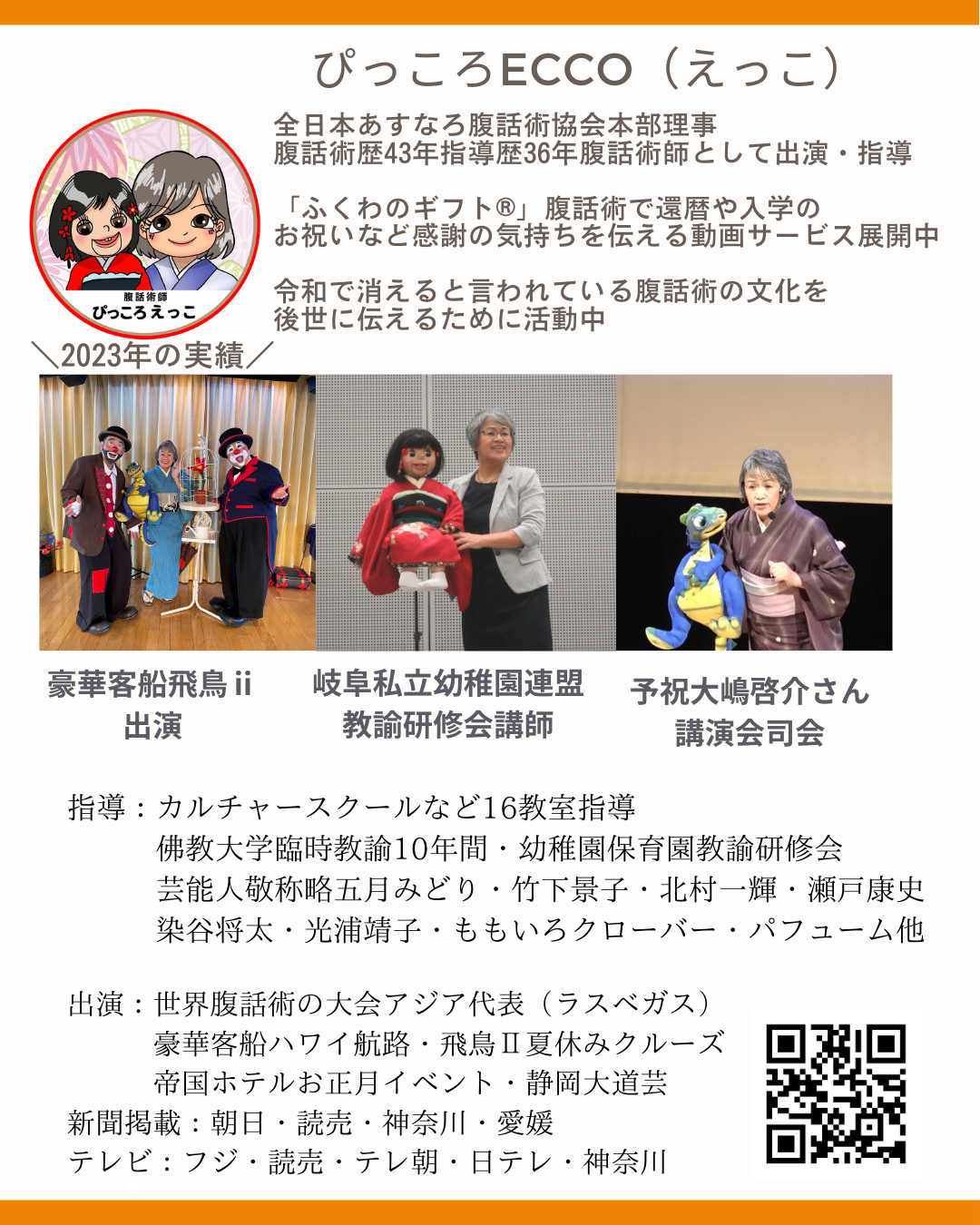 ひとこと: 人をにっこり笑顔にするのが得意です。感謝の気持ちをユーモアを添えて動画にする「ふくわのギフト®」展開中。イベントに出演したり腹話術指導中。